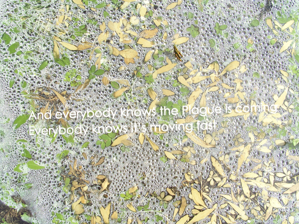 Ausschnitt aus der 10-teiligen Installation „everybody knows“, 2010. Nach einem Text von Leonard Cohen. 10 transparente Plexiglastafeln, Siebdruck weiß, jeweils 65 x 65 cm