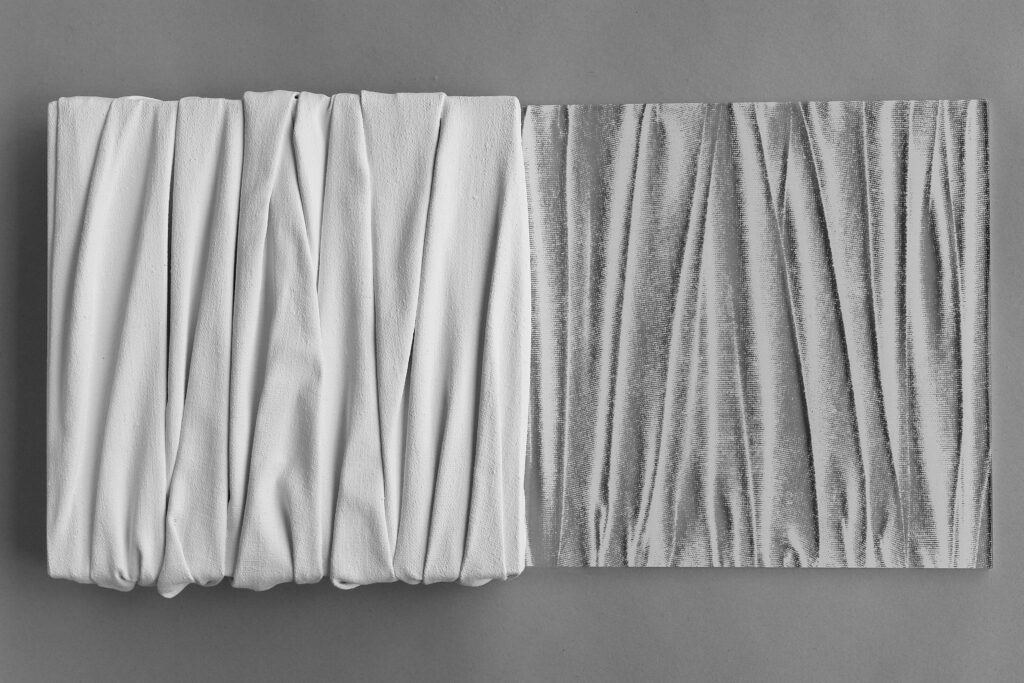 Siebdruck weiß, 18 x 36 x 3 cm.